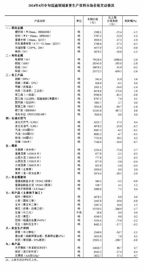 中新网6月24日电 据国家统计局网站消息,据对全国流通领域9大类50种重要生产资料市场价格的监测显示,2024年6月中旬与6月上旬相比,13种产品价格上涨,31种下降,6种持平。其中,生猪(外三元)价格环比持平。(中新财经)