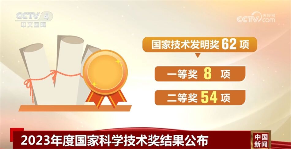 国家技术发明奖62项:一等奖8项,二等奖54项;