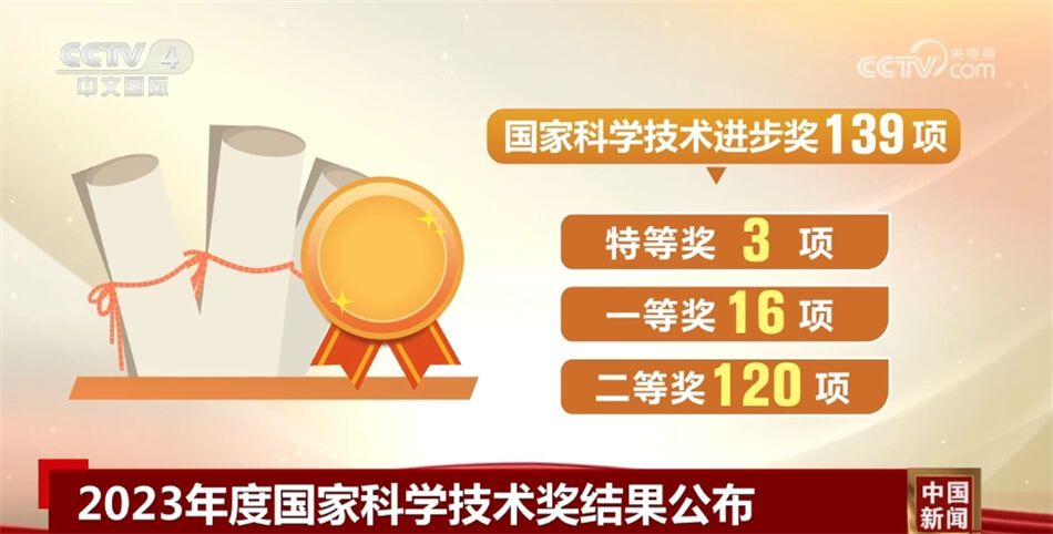 国家科学技术进步奖139项:特等奖3项,一等奖16项,二等奖120项;