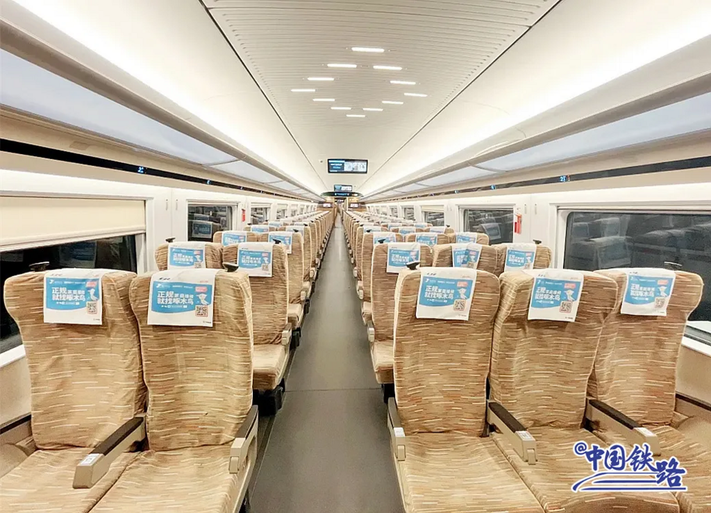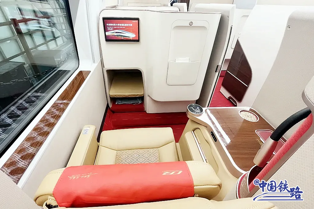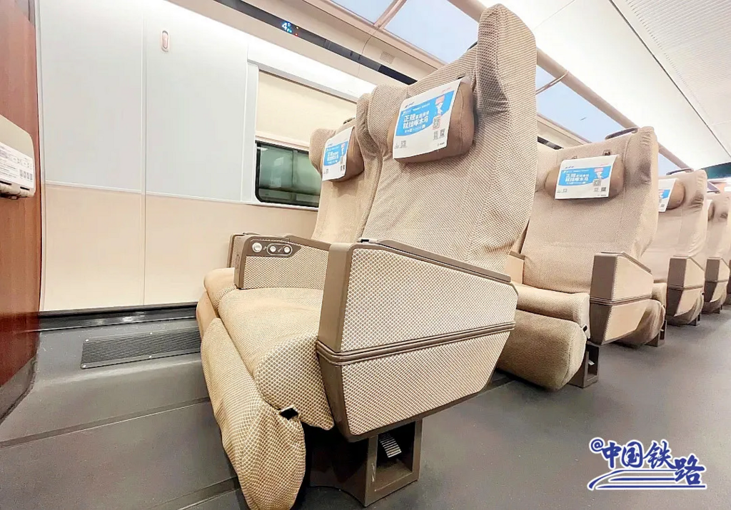 商务座为包间式,配备娱乐屏、手机无线充电、化妆镜等;一等座椅增加电动腿靠、可调节头靠、背板小桌板等;二等座椅靠背设有USB充电接口等。