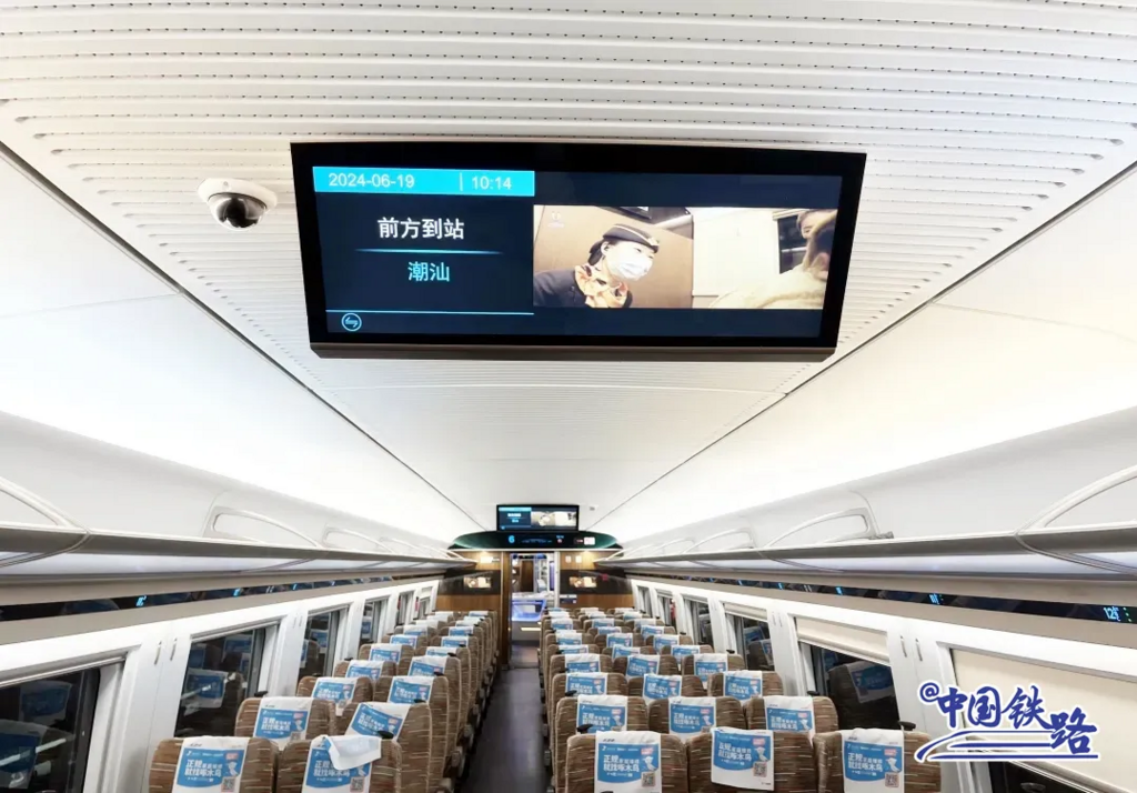 列车广播设置了粤语到站及安全提示,确保每位旅客都能及时接收到重要信息。为解决香港与内地插座不通用的困扰,车上还备有充电插头转换器。