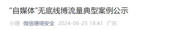 6月25日,微信珊瑚安全微信公众号发布《“自媒体”无底线博流量典型案例公示》。具体如下: