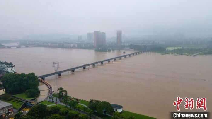 中新网金华6月26日电(董易鑫 成超)据浙江省水文管理中心兰溪水文站监测,26日8时50分,位于浙江金华兰溪市的兰江到达洪峰水位30.32米,洪峰流量9910立方米每秒。