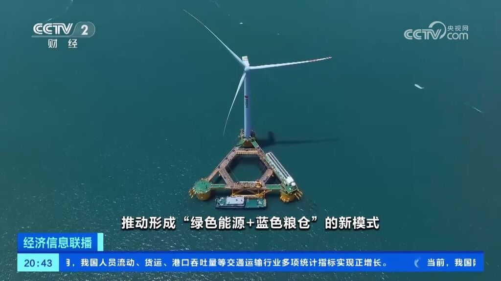 总台央视记者古峻岭介绍,随着直径130米的巨大叶轮缓缓开始转动,全球首座风渔融合浮式海上平台“国能共享号”正式投产,为千家万户带来源源不断的清洁电能。