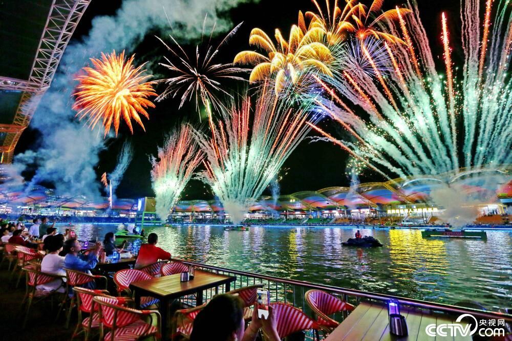 重庆万盛湖光音乐烟花秀,激活乡村“夜经济”。