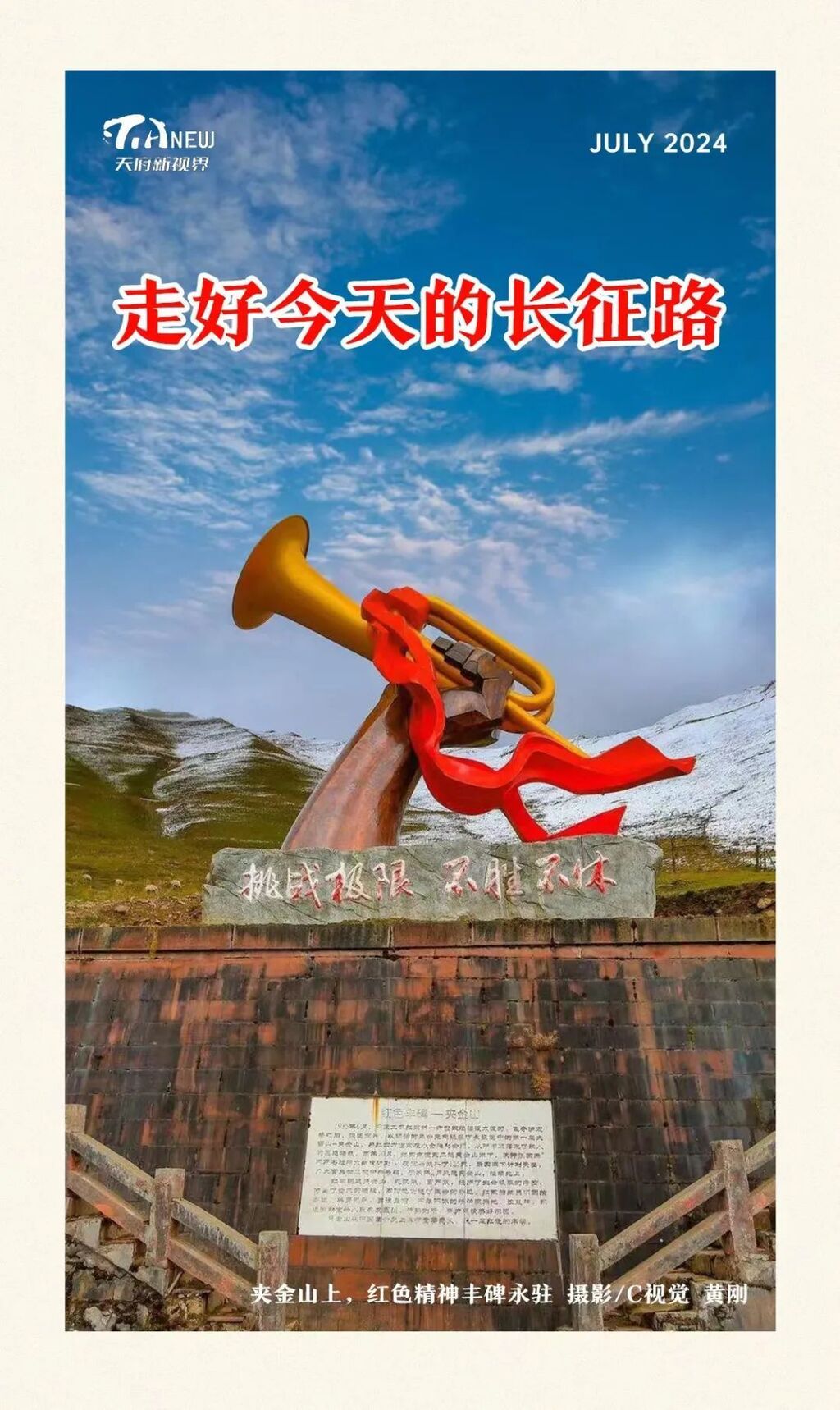 阐释好长征文化的时代价值,在大地上读懂长征精神。长征,一段镌刻在中国大地上的史诗,其精神穿越时空,成为中华民族永不磨灭的灯塔。这不仅仅是一场地理上的伟大迁徙,更是一次精神上的飞跃觉醒,映照出中国共产党人面对生死考验时的信念与勇气。它若一座桥梁,连接着过去与未来,教会人们,无论面对多大的困难和挑战,只要心中有信仰,脚下就有力量。建设长征国家文化公园,是将这段辉煌历史深深烙印在祖国大地上,其不仅是对长征精神的致敬,更是对中华优秀传统文化的传承与创新,彰显了中国文化自信与开放包容的魅力。7月1日,在庆祝中国共产党成立103周年之际,我们不仅重温那段筚路蓝缕的岁月,更是在致敬历史中汲取前行的力量。毕竟通往未来的力量,就藏在波澜壮阔的奋进历程中。新时代的长征仍在进行,在中国人民奔赴光荣与梦想的路上,伟大长征精神历久弥新,也历久弥坚。