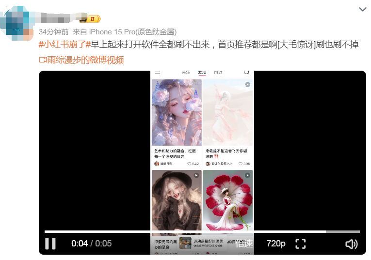 随后,也有不少网友反映#小红书崩了#,刷新不出推荐内容。