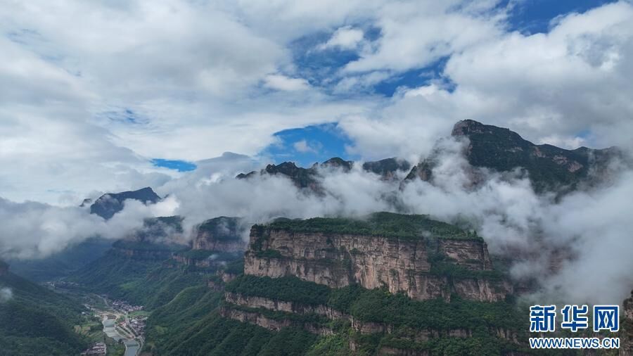 雨后天晴,河南省安阳市林州太行大峡谷出现云海景观,云雾在山间奔涌,时而飘逸如轻纱,时而翻滚似波涛,如梦如幻。