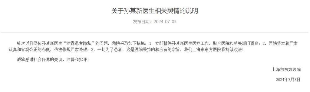 ·网传上海一医生私下传播病人麻醉时裸照及手术信息?院方通报:暂停其医疗工作,配合调查。