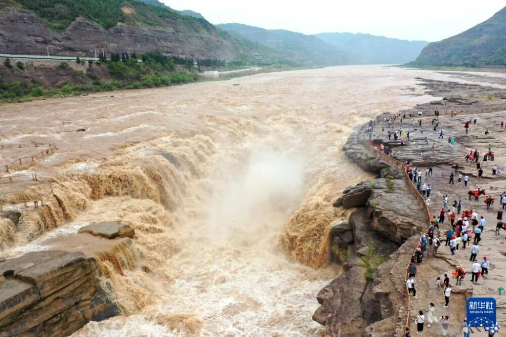 近日,随着黄河正式进入主汛期,受上游降雨增多和水库调节放水影响,黄河壶口瀑布水量大增,吸引众多游客。