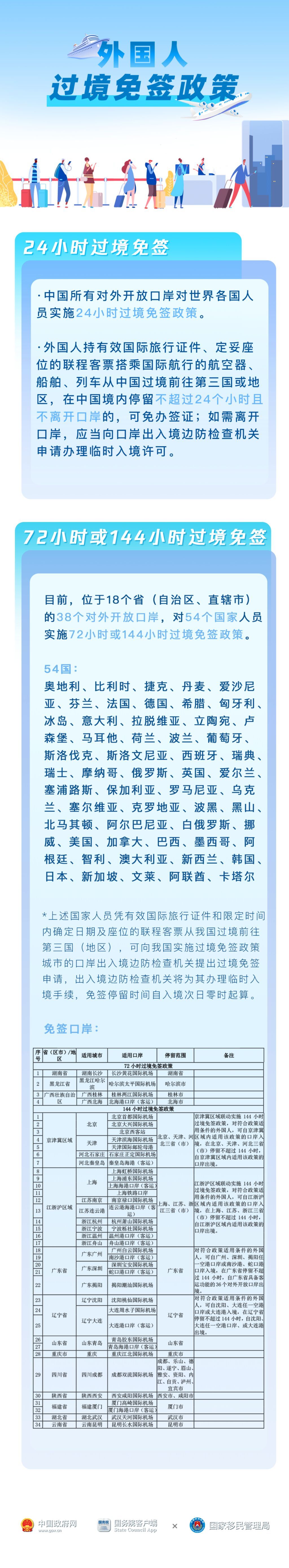 中国政府网、国务院客户端联合国家移民管理局制作“一图读懂”外国人过境免签政策(Visa-Free Transit Policies for Foreign Nationals),一起来看——