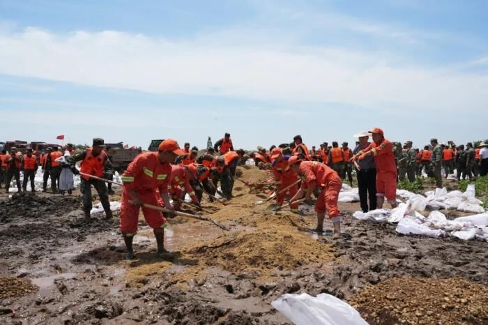 中新网7月8日电 据“中国消防”微信公众号消息,7月8日,湖南岳阳华容县钱团间堤堤坝发生管涌险情。消防救援人员与武警官兵、民兵等抢险救援力量全力处置,在现场专家成员的协助下成功封堵3处管涌。