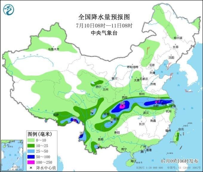 中新网7月9日电 据中央气象台网站消息,9日至13日,四川盆地至淮河流域一带新一轮强降雨过程来袭,四川盆地、黄淮南部、江淮、江汉等地的部分地区将有大到暴雨,局地大暴雨;江南等地高温天气持续发展,浙江、福建、江西、湖南等地部分地区最高气温可达37~40℃。中央气象台9日早晨发布暴雨黄色预警,并继续发布高温黄色预警。