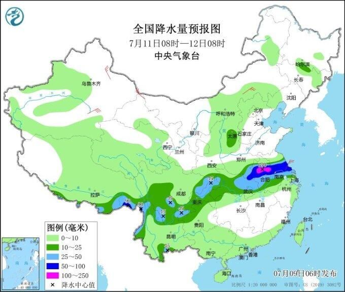 天气实况监测显示,过去一天,强降雨出现在四川盆地、河南、山东南部及苏皖北部等地,部分地区有暴雨或大暴雨,江苏连云港、安徽宿州、山东枣庄、河南驻马店等局地日雨量达到200~250毫米。昨日夜间起,位于黄淮地区的主雨带东段逐渐南落,未来三天将稳定维持在苏皖鄂豫等地;与此同时,四川盆地雨势仍然强劲,四川东北部、重庆北部需特别警惕持续强降雨可能引发的山洪和地质灾害。预计未来24小时,陕西南部、四川盆地中北部和西部、湖北西部和东北部、河南东南部、安徽中北部、江苏中部等地有大到暴雨,四川东北部、湖北东北部、河南东南部、江苏中部等地的部分地区有大暴雨(100~150毫米);上述地区伴有短时强降雨、局地雷暴大风等强对流天气。
