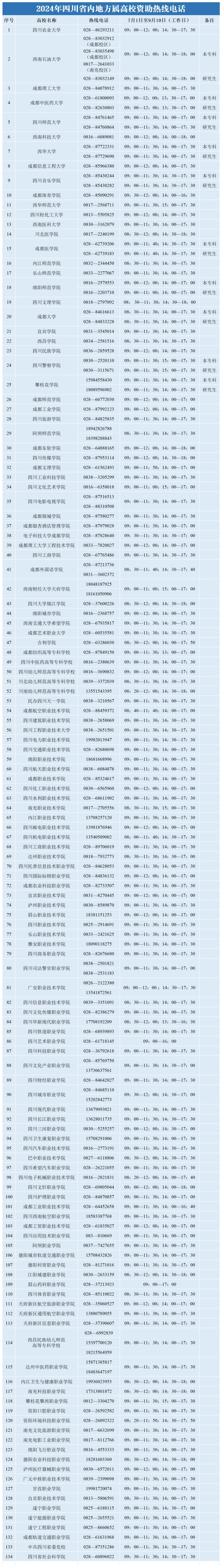为更好地服务家庭经济困难学生及家长,解除他们的后顾之忧,素材省开通了学生资助热线电话,各市(州)、县(市、区)学生资助管理中心、高校和省属中职校也同时开通热线电话,现予以公布。