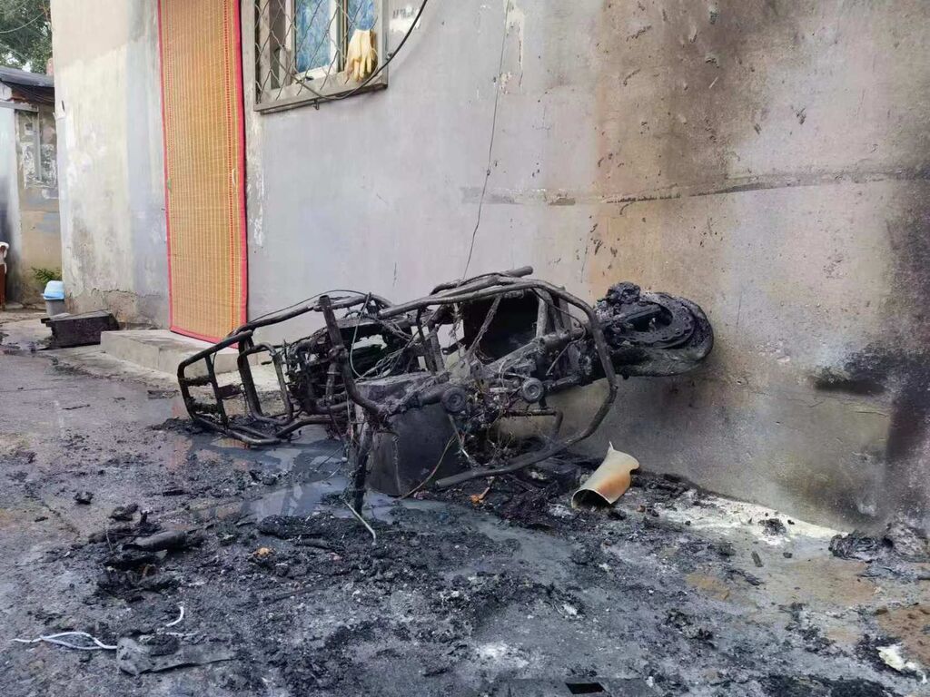 火灭之后,电动自行车已经被完全烧毁,由于火灾发生于居民区,事发时周围停放着其他电动自行车、三轮车等车辆,也都受到火灾波及,造成不同程度的损失。