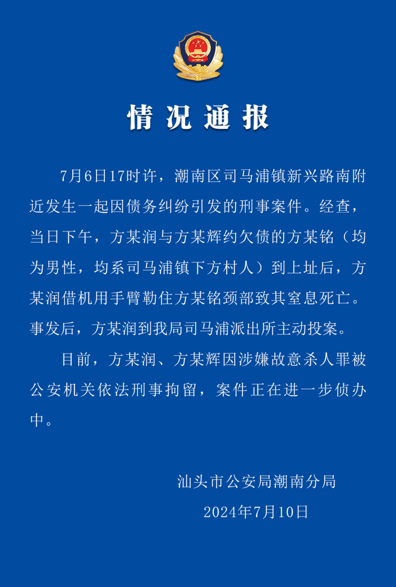 ·汕头警方通报“15岁男孩遭两名同龄人杀害”:债务纠纷引发,刑拘两人。