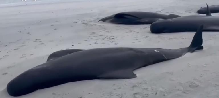 ·77头领航鲸在英国海滩搁浅,仅12头存活。