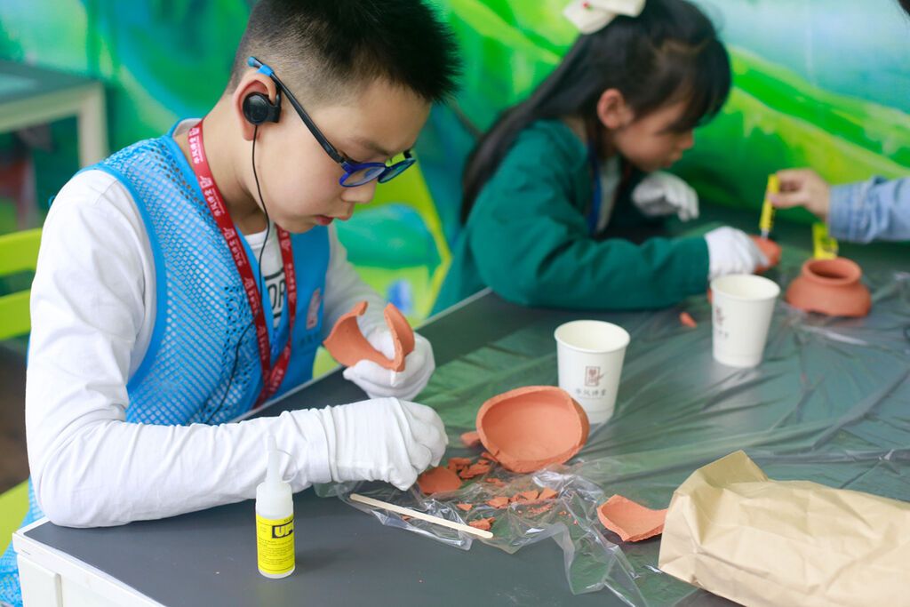 孩子们“化身”修复师,巧手拼出千年历史。日前,“我在金沙修文物”暑期定制课在成都金沙遗址博物馆开课,20多名青少年手捧以博物馆出土陶器为模型的残损陶件,在博物馆方怡老师的主讲下,进行陶片拼接黏合等修复活动。