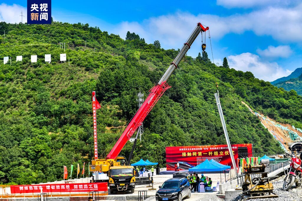 7月12日,在陕西省镇安县镇安西站,西康高铁接触网首杆成功组立,标志着西康高铁站后“四电”工程全面启动,为西康高铁按期开通运营奠定了坚实的基础。
