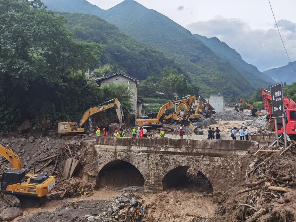 四川发布客户端消息 7月21日16时10分,记者从四川省交通运输厅获悉,汉源县7.20山洪灾害发生后,四川交通运输部门齐心协力,攻坚克难,全力以赴加快推进灾区道路抢通保通工作。截至目前,通往灾区的国省县道均已抢通,尚未抢通的2条乡道和2条村道中,救援主通道乡道Y104线路抢通工作获得阶段性、关键性重大进展,两座损桥梁之一大沟桥实现抢通,为乡道Y104线实现车辆全线通行,加快剩余农村公路抢通奠定了强有力基础,也为人员搜救和应急保障提供了有力交通支撑。