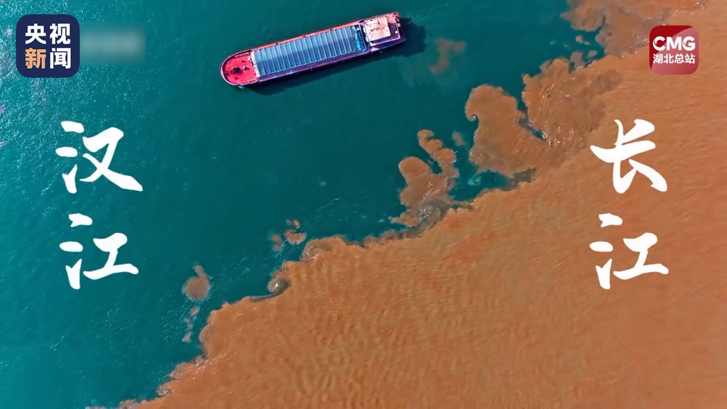 近日,湖北武汉南岸嘴,位于长江与汉江交汇处的长江水呈黄色,汉江水呈绿色,两种颜色汇合水域现“泾渭分明”自然奇观。