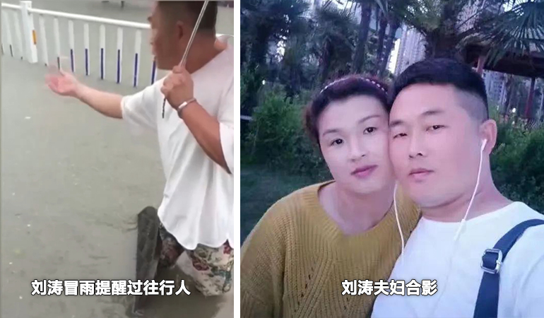 近日,河南漯河遭遇暴雨,暴雨中一位身穿白色短袖的男子化身“警示牌”——站在没膝大水里,用腿顶着被雨水冲开的窨井盖,不断示意过往行人和车辆注意安全。他叫刘涛,是漯河市2020年“十佳市民”之一。他的爱人潘东亚女士为了救下一名落水儿童不幸溺水身亡。刘涛说:“我愿意以后多做好事,让她(妻子)永远都记在我心里。”