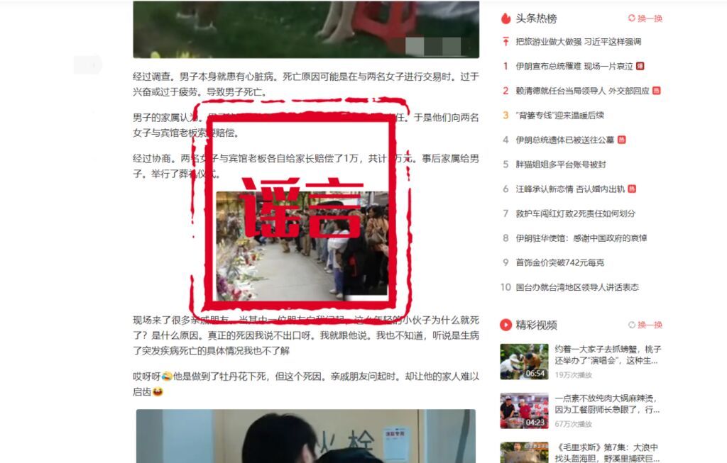 案例九:利用AI软件编造“嫖娼突发心脏病死亡”网络谣言