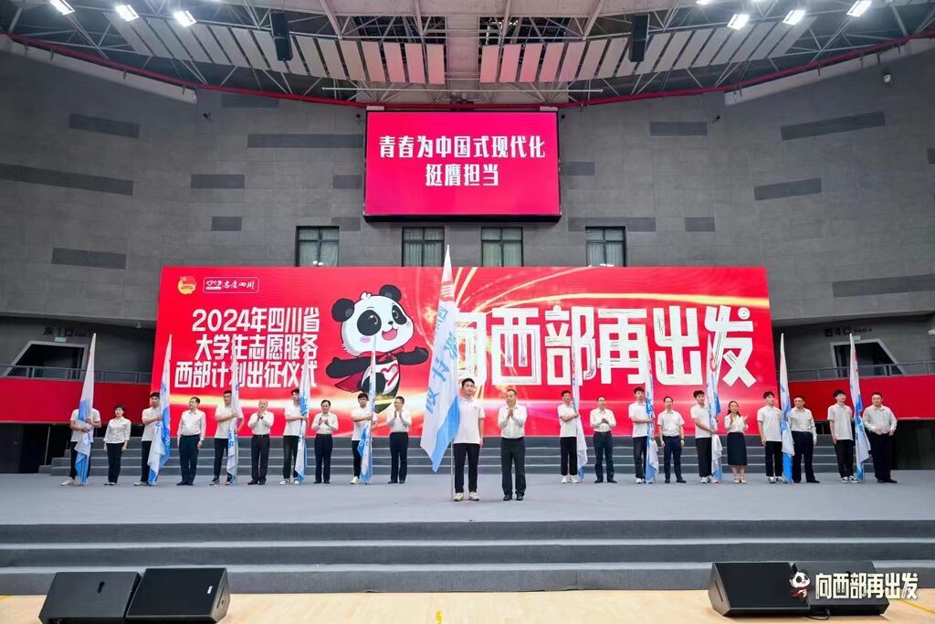 7月23日,2024年四川省大学生志愿服务西部计划志愿者出征仪式在成都大学举行。省委常委、副省长普布顿珠为2024年四川西部计划志愿者授总旗。