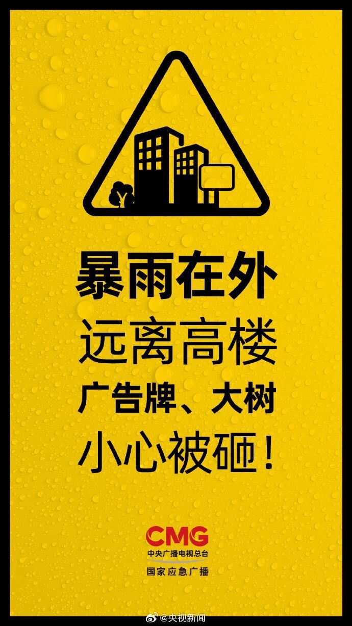 暴雨时若在室外,远离高楼、广告牌等,小心被砸;