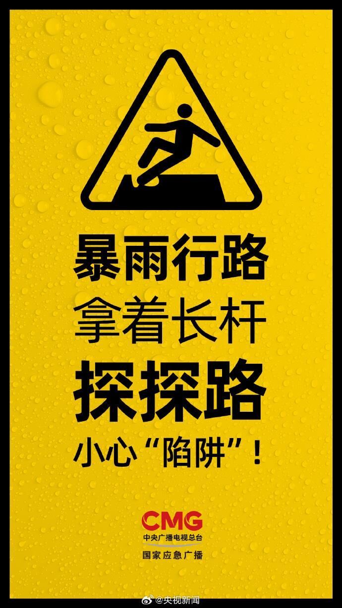 暴雨天行路,拿着长杆探探路,小心“陷阱”!
