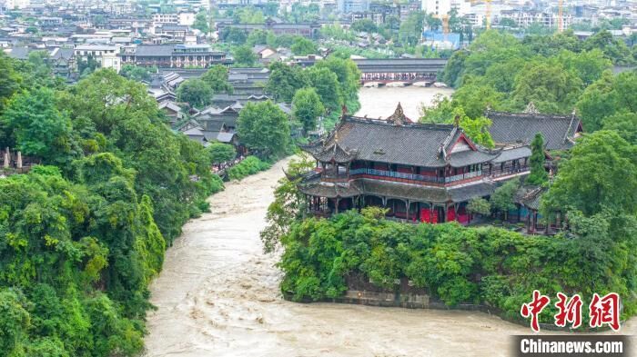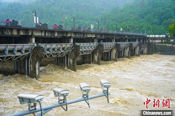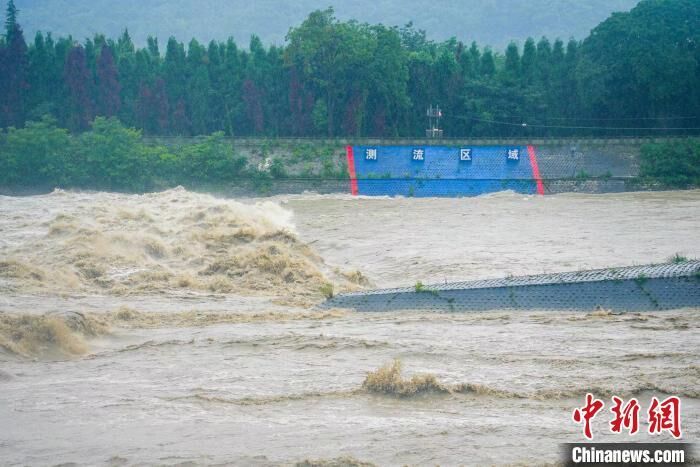 中新网成都7月24日电 (记者 何浠)记者24日从都江堰水利发展中心获悉,7月24日4时50分,都江堰渠首枢纽(鱼嘴、飞沙堰、宝瓶口)迎近10年最大洪峰过境。滚滚岷江水越过鱼嘴奔流直下,六大干渠稳定运行,已运转2280年的古老工程再现四六分水、自然分流奇观,全力守护成都平原江河安澜。