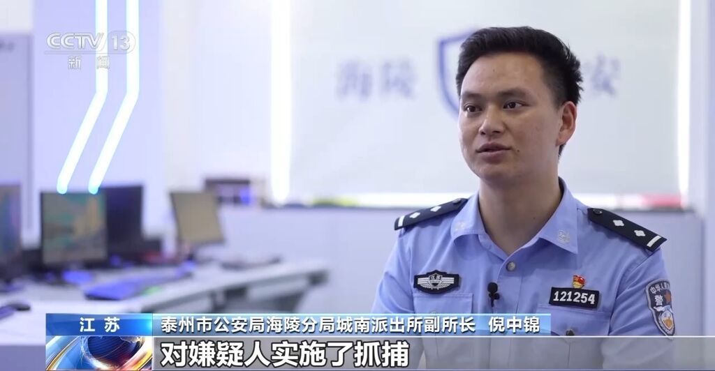 泰州市公安局海陵分局城南派出所副所长 倪中锦:经过工作和分析研判,我们发现嫌疑人落脚点在江苏省无锡市,我们组织精干警力到江苏无锡对嫌疑人实施了抓捕。