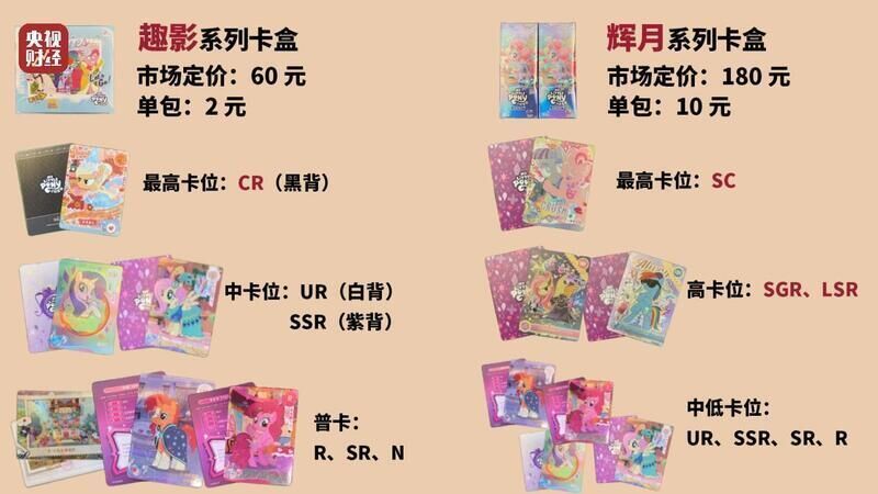 很多城市的商场里,卡游连锁商店的生意异常火爆。顾客大部分都是孩子,他们几乎都是冲着“小马宝莉”卡牌盲盒而来。这是一款以“小马宝莉”动画片中的形象为原型制作的一款卡牌盲盒产品。