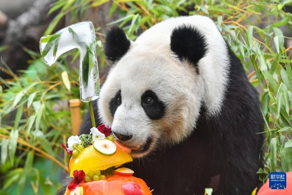 ·莫斯科动物园为旅俄大熊猫“丁丁”“如意”庆生。