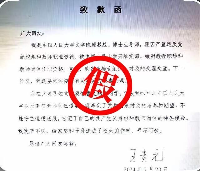 ·江苏一网民冒充人大原教授发虚假《致歉函》,被采取刑事强制措施。