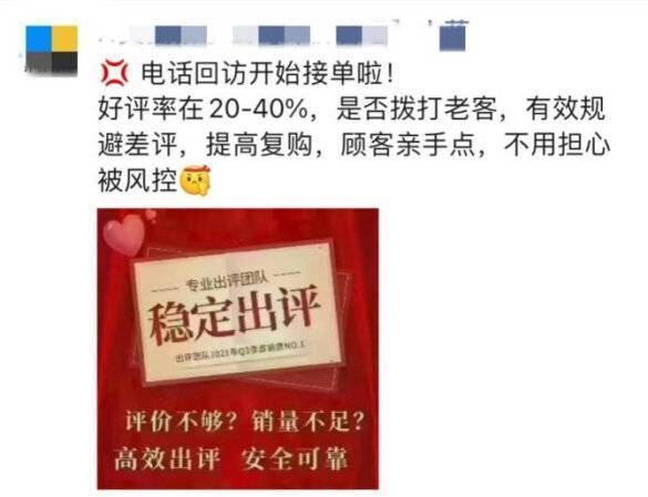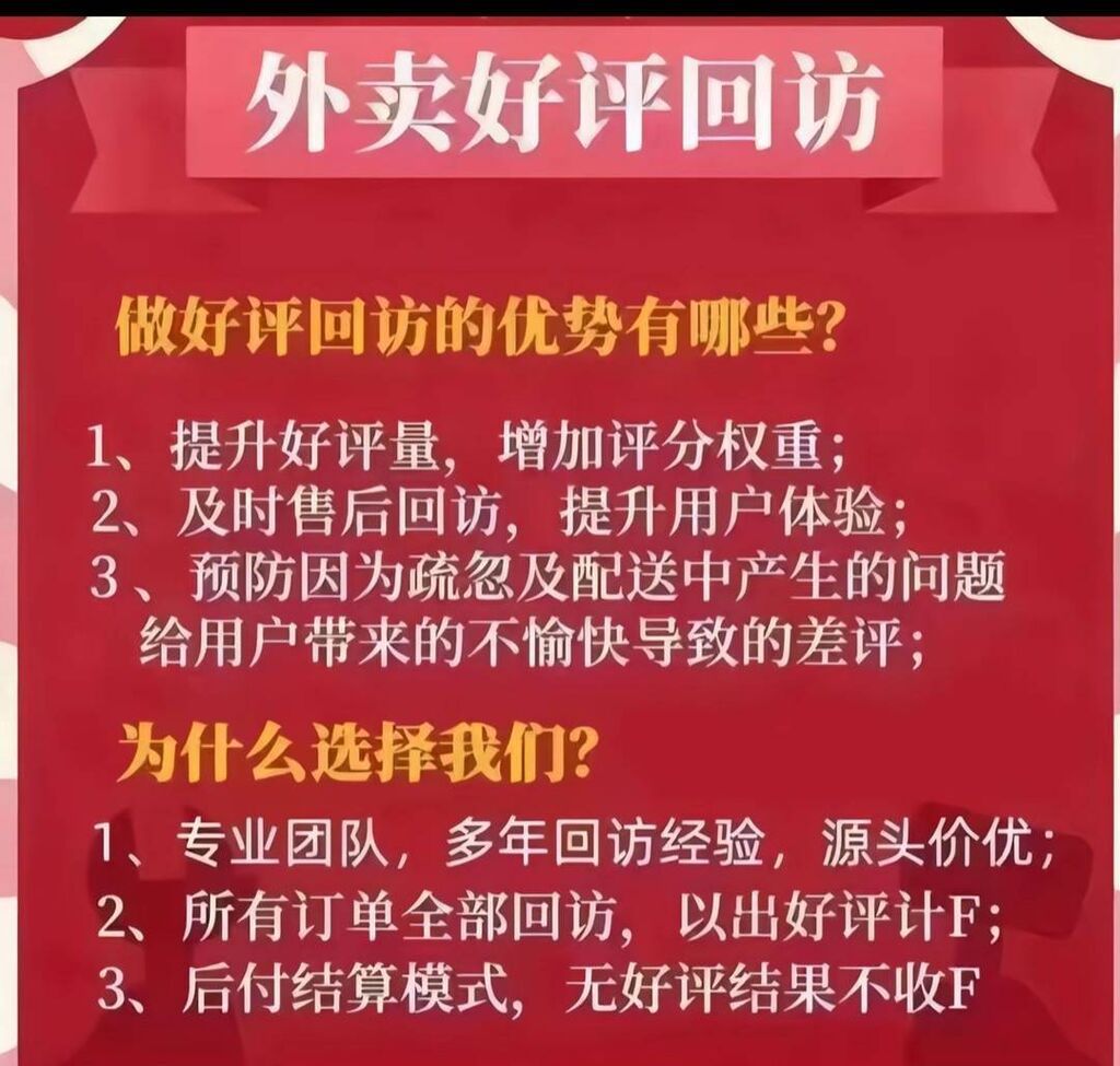 记者发现,市场上不少公司为外卖商家提供“好评回访”“好评托管”等服务。