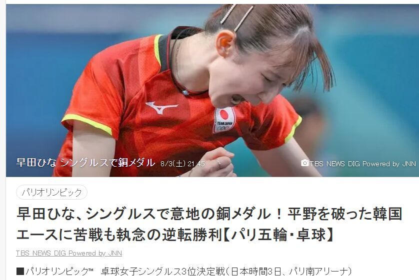 日媒立马发文:早田希娜单打铜牌,战胜韩国王牌申裕斌,苦战逆转是执念的胜利。