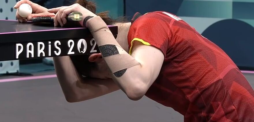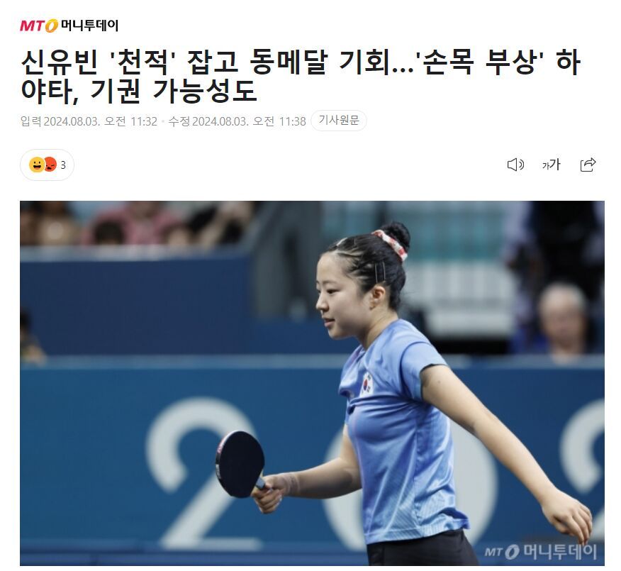 这场比赛之前韩国媒体还在期盼早田希娜因为左手腕的伤势退赛,申裕斌不战而胜获得铜牌,不过早田希娜决定带着左手腕的伤势继续鏖战,她左手腕上的绑带缠的更多绑的更紧。