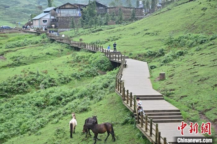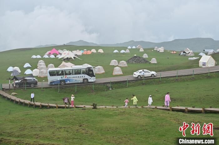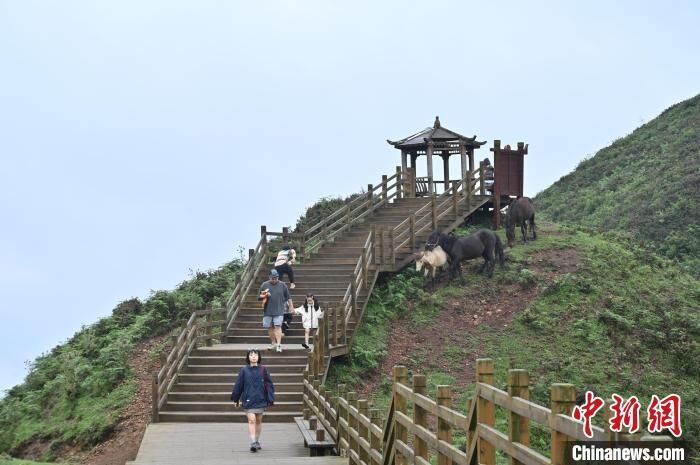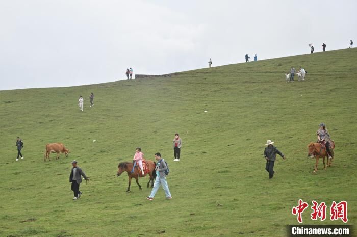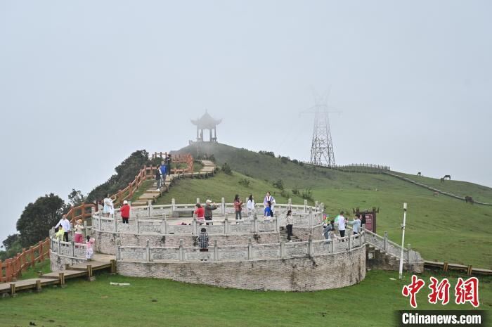 8月3日,贵州省六盘水市的乌蒙大草原景区吸引游客前来避暑游玩。乌蒙大草原景区是中国西南地区海拔最高、面积最大的高原草场之一,最高海拔为2857米,年平均气温为11.1℃,是夏日避暑的好去处。中新社记者 陈楚红 摄