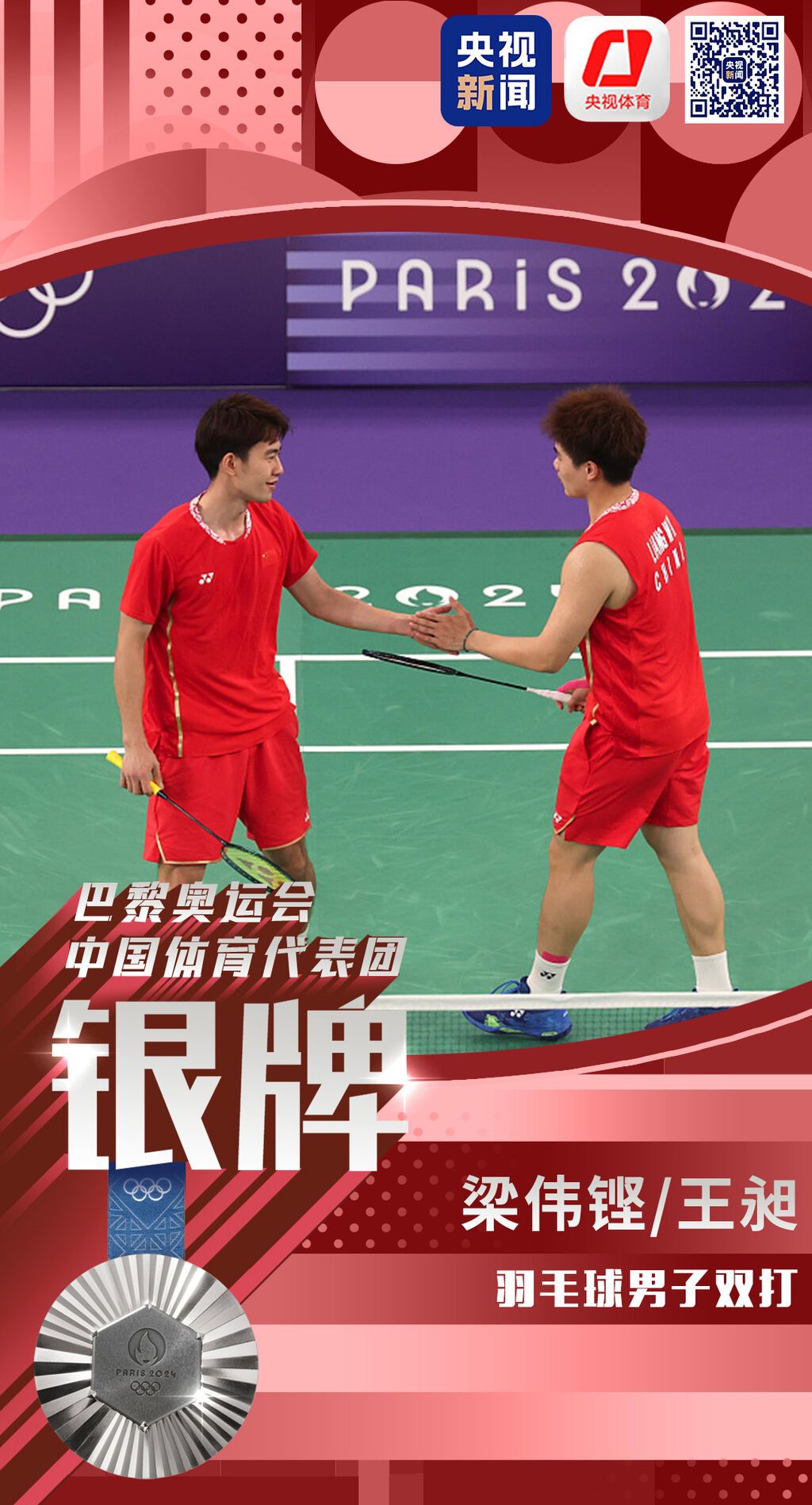北京时间8月4日,在巴黎奥运会羽毛球男子双打决赛中,中国组合梁伟铿/王昶夺得银牌。