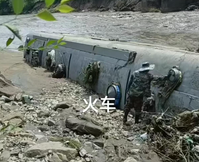 ·黑龙江东宁一河道现火车车厢,当地回应:洪水冲坏废弃线路致老旧客车体落水,车厢内无人。