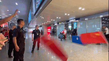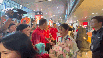 “欢迎回来!”“雅文加油!”大家用欢呼和鲜花,迎接这位在巴黎奥运会创造中国自由式小轮车项目历史的运动员。