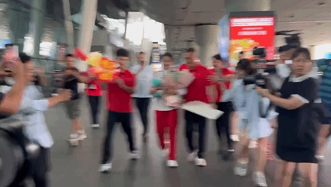 8月的四川,热情似火。在成都双流国际机场接机大厅,气氛尤为热烈。8月4日16时许,前来迎接邓雅文的亲友团和媒体记者早已齐聚,他们挥舞着“自由式小轮车棒棒棒!”等标语,等待奥运冠军凯旋。