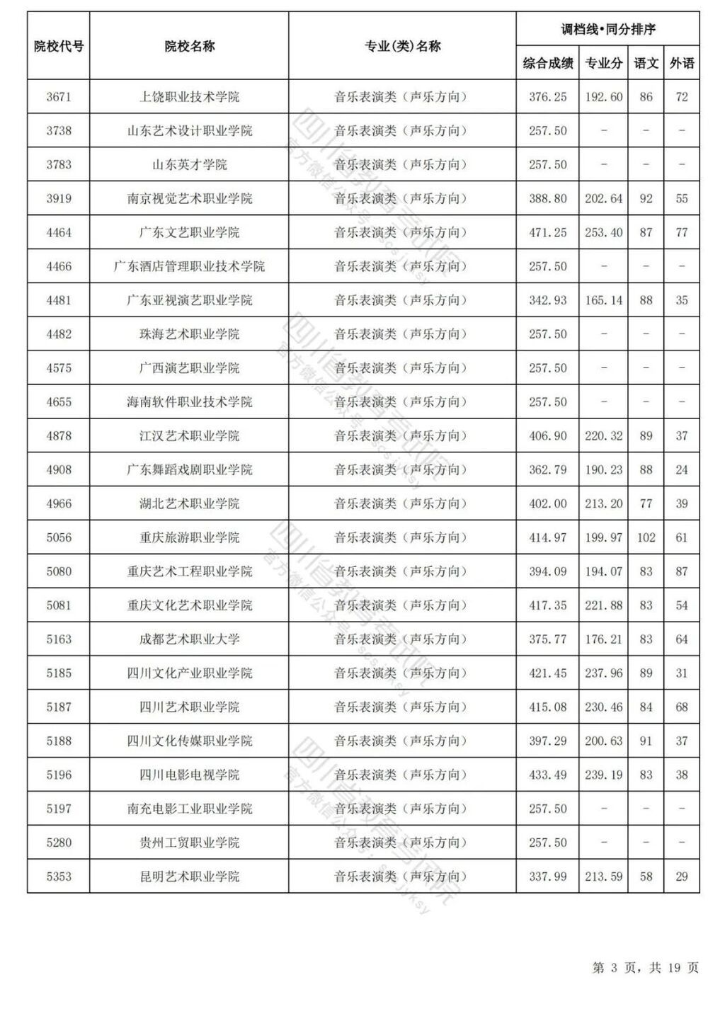 在此,要提醒大家的是,一些机构和个别媒体在网络上传播的部分院校在川招生艺术体育类专科批调档线均不是我院官方发布,请大家务必当心,以四川省教育考试院官方发布的院校调档线为准。