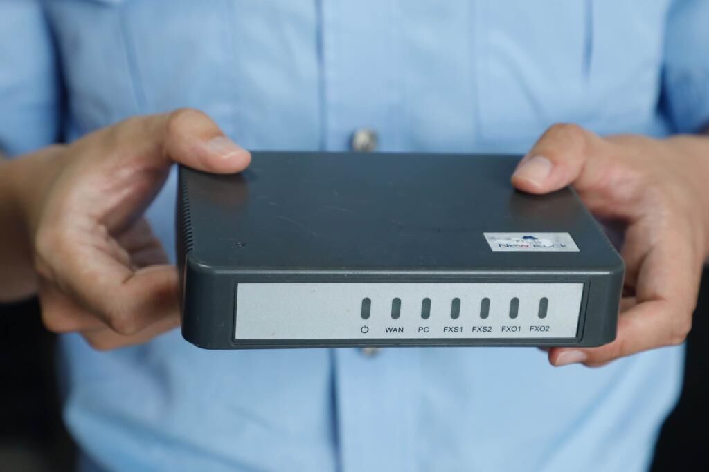 办案民警介绍,这些居民家中的固定电话线终端多了一个闪烁着信号的“黑盒子”,这就是运行中的VOIP语音网关,可将境外网络信号转化为本地固话信号。部分被安装“黑盒子”的用户,误认为这就是普通的“机顶盒”。