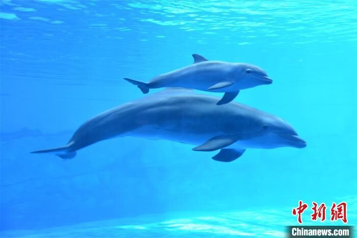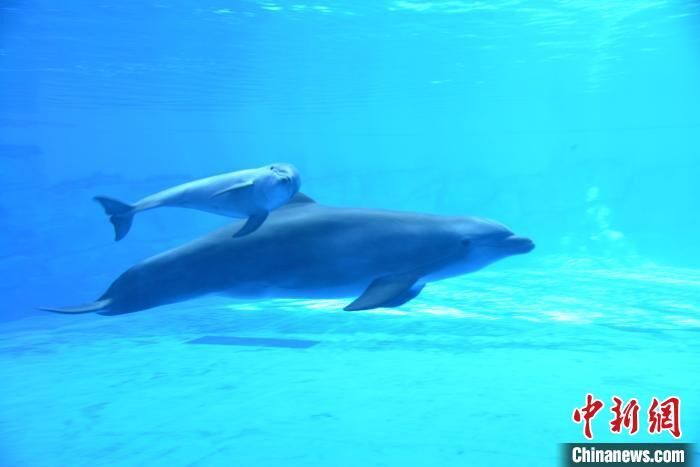 “一个月来,我们非常可喜地看到小海豚的体长有明显增长,身体各个部位更加饱满,从刚出生时寸步不离母亲,到现在已经能短暂地独立游动了。”刘小鸥笑说,“灵宝儿”有时会用胸鳍和尾鳍与母亲互动,或环绕在“娜雅”周围游动,“就像吸引大人注意的小孩子一样”。
