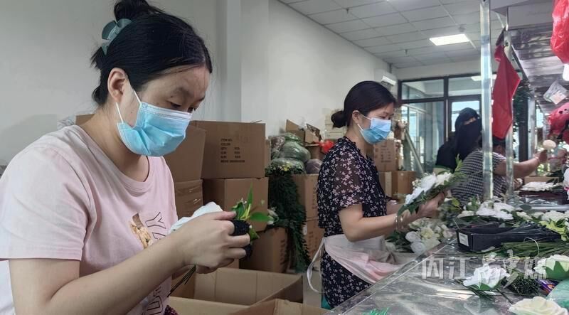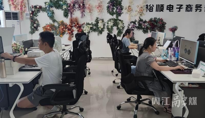 “为了迎接下半年旺季的到来,我们正在抓紧制作产品,陆续发往国外。”8月8日,位于内江隆昌市的西南国际轻纺城内,隆昌裕顺电子商务有限公司的员工们正在赶制一批出口美国的婚礼装饰花。在办公区,员工们有的在联系客户,有的在伏案设计新品,各司其职,十分忙碌。