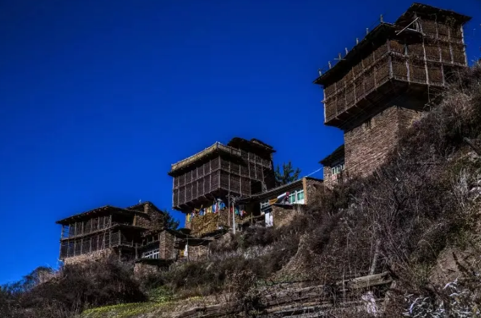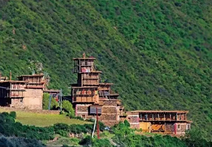 修卡悬天藏寨:位于平均海拔3450米的高山悬崖之上,始建于1771年,原本是阿西土司的官寨,修卡悬天藏寨所处的山如同“神鸟”凤凰的体形,藏寨恰好位于凤凰的嘴上,故又称“凤凰寨”。整个寨子具有易守难攻、利于观察等特点,有“一夫当关,万夫莫开”之势。因其保存完好,2016年,修卡悬天藏寨入选中国传统村落名录。