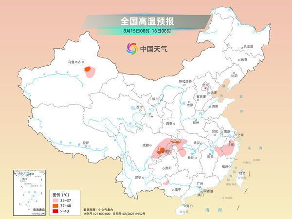 今明天(8月15日至16日),华南、江南等地还将有分散性强降雨,四川、广东、福建、湖南等地部分地区有暴雨。随着副热带高压减弱和降雨铺展,南方高温明显减弱,新疆成为高温影响的核心区域。